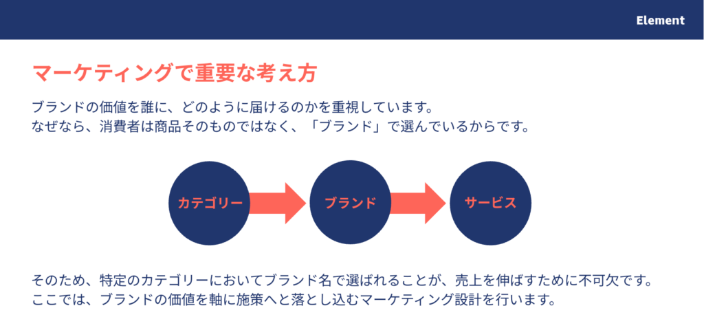 私たち株式会社エレメントでは、お客様の成果を最大化するために、徹底した戦略設計を行っています。