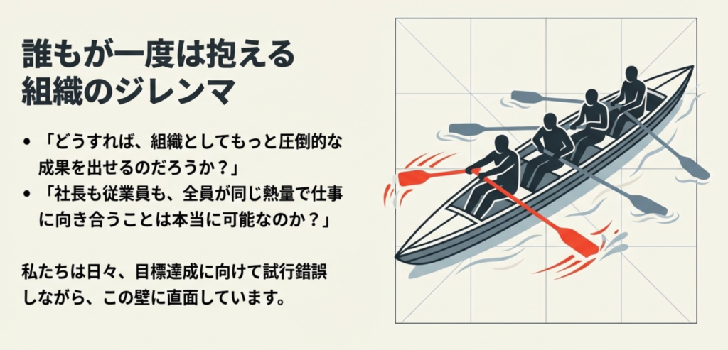 組織のリーダーやマネージャーの立場では、「社長も従業員もみんなが同じ熱量で仕事に向き合うことは本当に実現できるのだろうか?」と悩むこともあるかと思います。